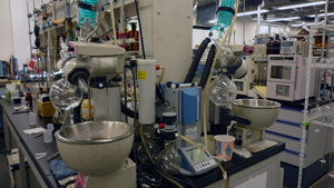 | ドラフト 有機合成反応などは、このドラフトの中で安全に行っています。 |