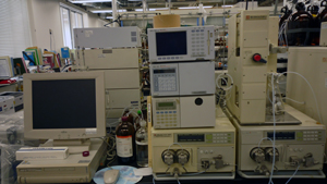 | 液体クロマトグラフ (島津製作所社製) 大量分取用と分析用のHPLCがあります。 |
