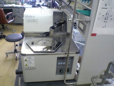 | エバポレーター (東京理化・バキュームブランド社製) 減圧力を自動調整できるダイヤフラムポンプを使用しています。 |