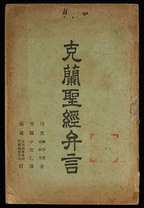 1925年、香港にて発行。インド人マウラーナー=ムハンマド=アリー Mawlānā Muhammad ‘Alī(1914-57)によるクルアーン英訳(The Holy Qur’ān : Arabic Text, Translation and Commentary, England,1917)の序prefaceを河北出身の回族尹恕仁が漢訳し、補足を加えたもの。