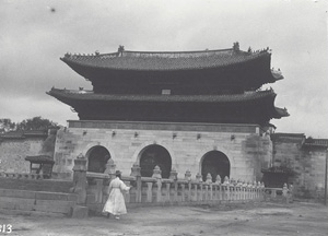 風俗写真・絵はがき資料は、朝鮮・満洲・アイヌ等の写真を含む資料群である。学習院図書館が明治39年(1906)12月に購入した。戦後、図書館長室(兼東洋文化研究所研究室)に、旧制学習院歴史地理標本室(大正初年に開設)の多くの資料とともに置かれていた。図書館長の任にあった末松保和教授が学習院東洋文化研究所主事となったことから図書館長室がそのまま東洋文化研究所となっていた。この資料群は近年、大学史料館によって発見された。現在は朝鮮および満洲に関連する資料については、調査研究のため東洋文化研究所に保管されている。撮影時期は不明だが、韓国の雑誌『新東亜』2005年1月号特別付録の写真集『100년전 한국』(100年前の韓国)に、上記写真資料と同一の原板を用いたとみられる写真が多数含まれており、同書の情報から明治39(1906)年頃に撮影されたものと推定される。この資料群のうち朝鮮関連の写真には、「朝鮮(一)」~「朝鮮(四)」と下部分類が設けられている。「朝鮮(一)」および「朝鮮(二)」には朝鮮各地の風景や名所を撮影した写真が主に収められ、「朝鮮(三)」にはソウルの王宮・景福宮を撮影した写真が、「朝鮮(四)」には朝鮮人たちの服装や風習を撮影した写真が主に収められている。この写真資料群については、東洋文化研究所において電子画像化やデータベース化が行われている。なお、学習院大学図書館には、明治期から昭和10年代まで蒐集した写真が原簿とともに残されている。