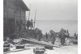 小樽郡の鯡漁 - 船より納屋に鯡をモッコにて運搬する是を沖揚と云う