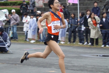 | 前日の天気予報が外れて集合時刻には雨。毎年この大会は雨に寒さに悩まされます。しかし、程なく曇り空に変わり、結果的に なかなかのコンディションに恵まれます。 午前中の女子のレースを終え、12:30に男子120チームが一斉にスタートします。目標を20位と掲げたこのレースで、それぞれが 堅実なレース運びで予想以上の展開を見せます。結果的には先週の区駅伝を上回る好走で18位。学習院の存在感を充分に 示した大会でした。 |